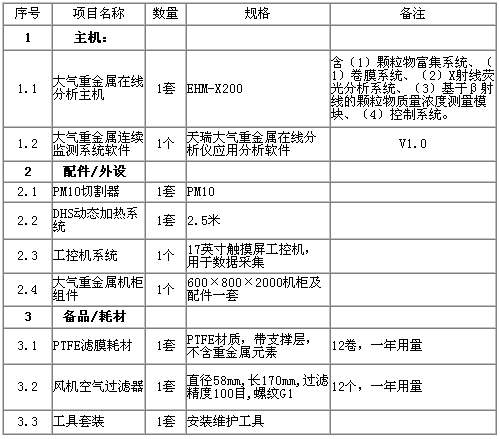 表1 天瑞仪器 EHM-X200大气重金属监测仪技术参数