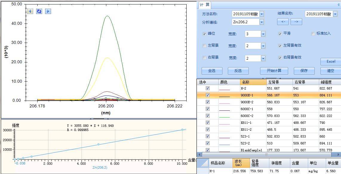Zn-206.2 | 10.0以内 | Y=3081.825X+80.328 | R=0.999913 | 0.0038 |