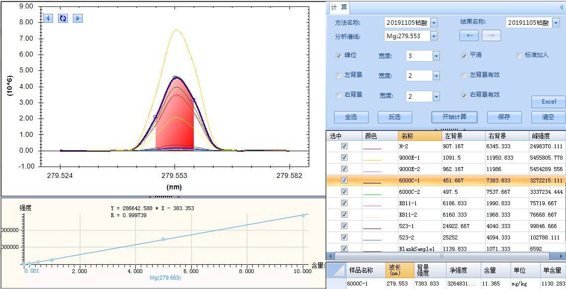 Mg-279.553 | 10.0以内 | Y=286764.250X+6649.706 | R=0.999665 | 0.0002 |