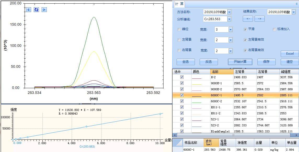 Cr-283.563 | 10.0以内 | Y=11745.353X+157.490 | R=0.999908 | 0.0016 |